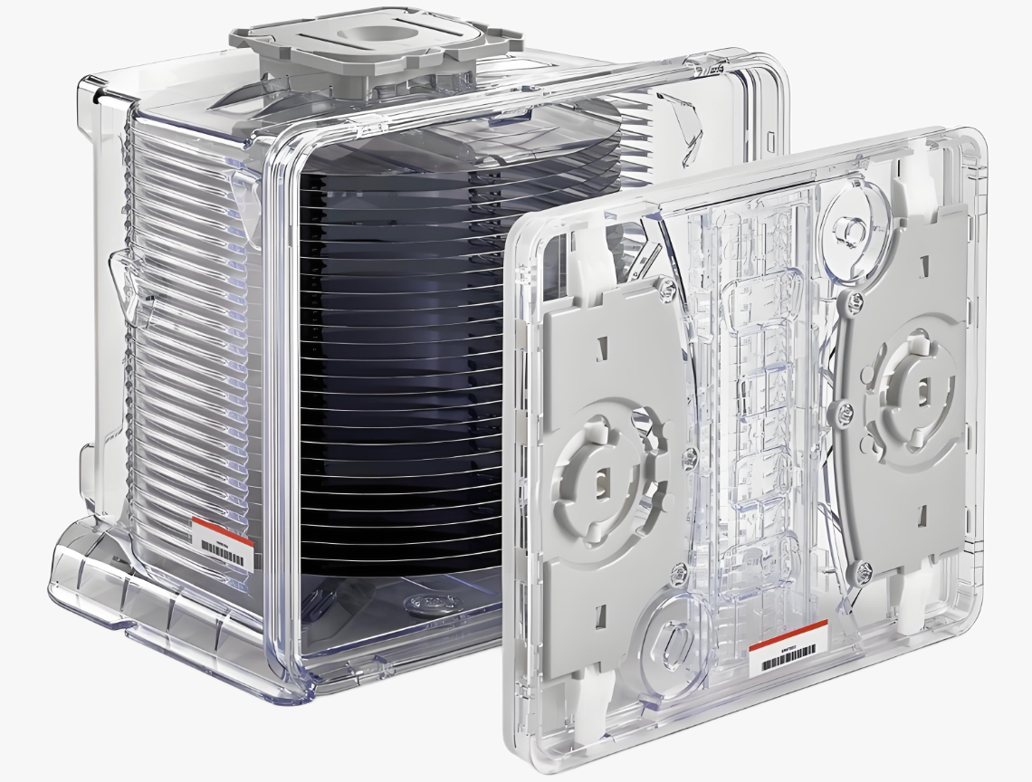 通常采用硬质塑料或导电材料制成,可容纳25片晶圆用于运输或存储,内部有精密设计的插槽,可垂直固定晶圆;