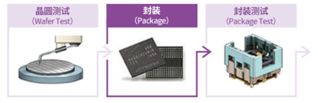 2. 封装(Packaging):将切割后的芯片(Die)封装在保护壳内,实现电气连接、散热和物理防护的工艺,又称“后道工艺(BEOL Back End Ofthe Line)”。